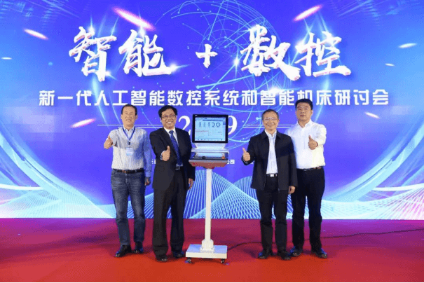與會嘉賓上臺共同見證新一代人工智能智能數控系統發布