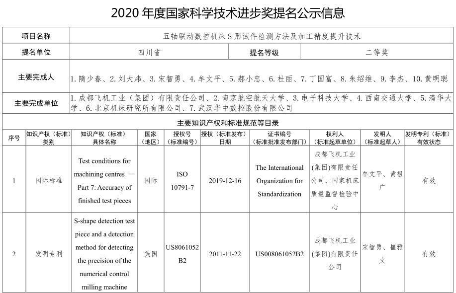 關于“面向復雜數控裝備的監測評估關鍵技術及標準體系”項目申報2020年度國家科技進步...