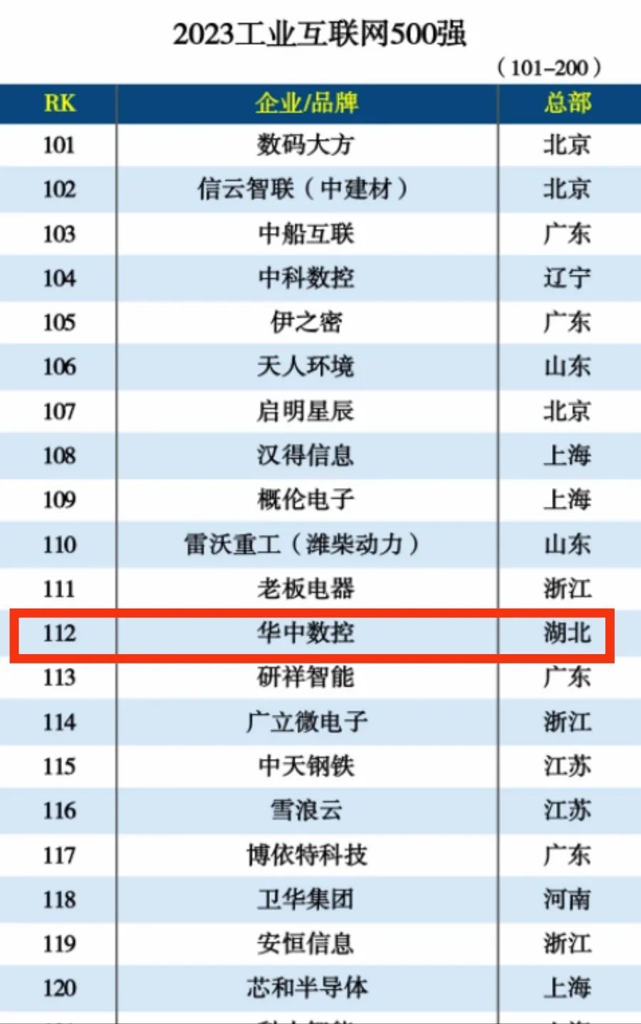 2023工業互聯網500強企業名單出爐!華中數控位列112名