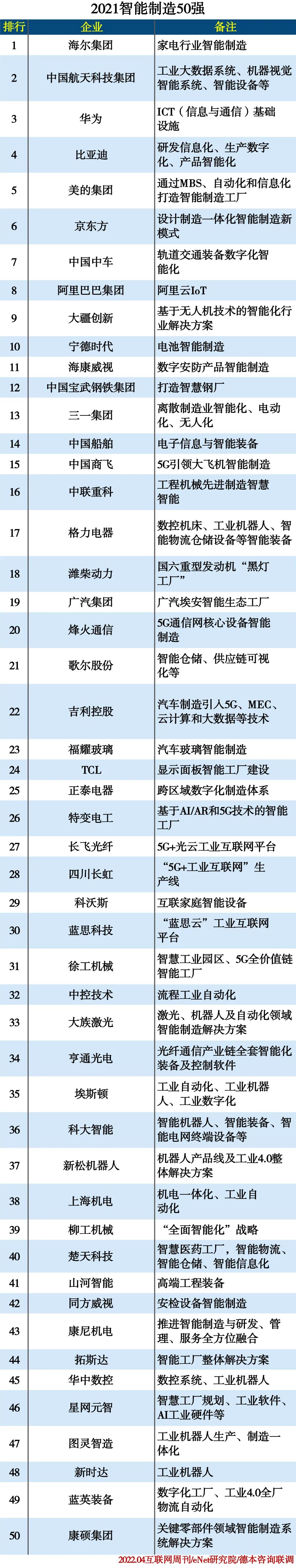 4月6日,《互聯(lián)網(wǎng)周刊》聯(lián)合eNET研究院、德本咨詢發(fā)布了“2021智能制造50強(qiáng)”排行榜,華中數(shù)控以數(shù)控系統(tǒng)、工業(yè)機(jī)器人領(lǐng)域的領(lǐng)先實(shí)力入選該榜單。同時(shí)列入該榜單的還有中國航天科技集團(tuán)、華為、比亞迪、美的集團(tuán)、京東方、中...